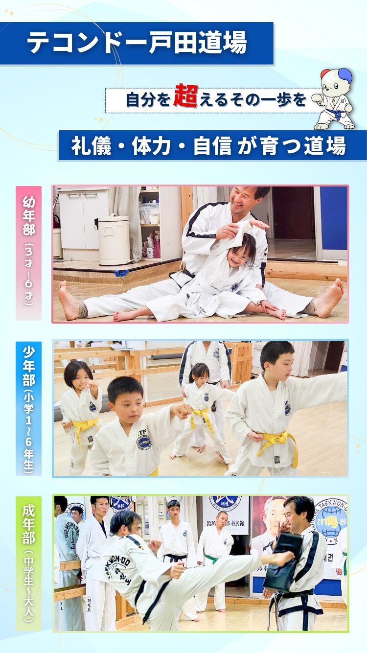 テコンドーを学ぶ仲間が集まる道場はとても居心地が良く、普段のストレスから解放される第3の居場所!