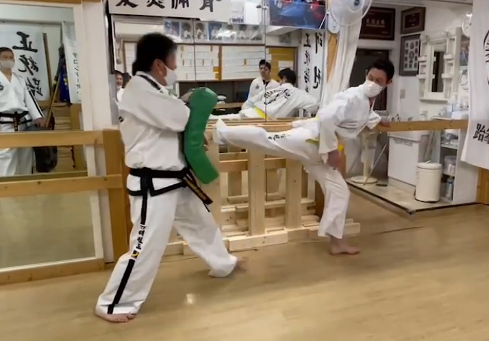 ミット蹴り稽古風景です。