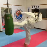 少年部と合同で稽古を行い小学生の動作を見て、自分でチャレンジ!