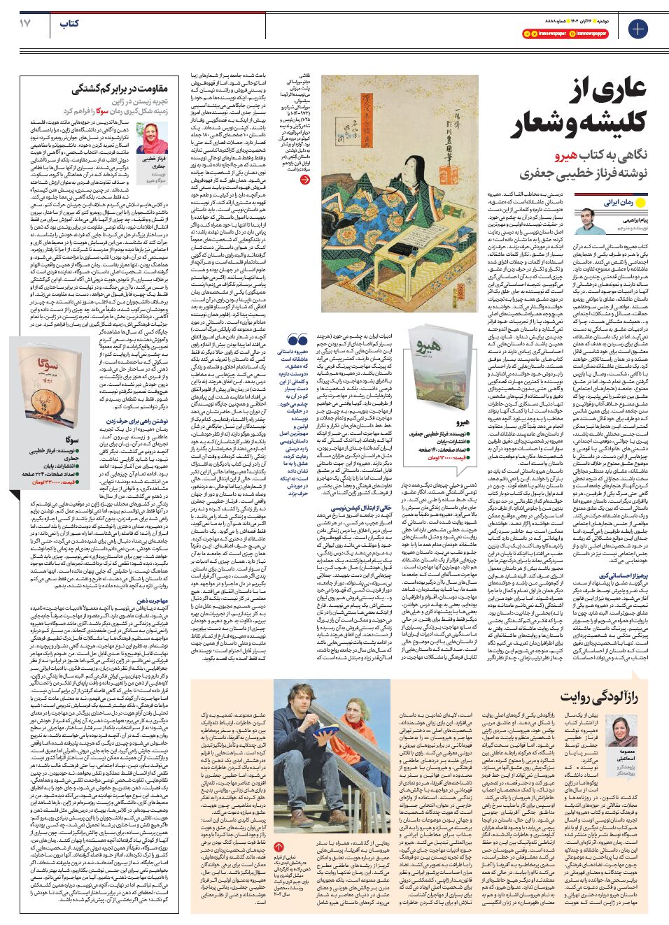 イランでいちばん有名な「イラン新聞」の文化欄一面にファルナズさんの著書「小説SUGA」の紹介があったと云う嬉しい知らせを頂きました!