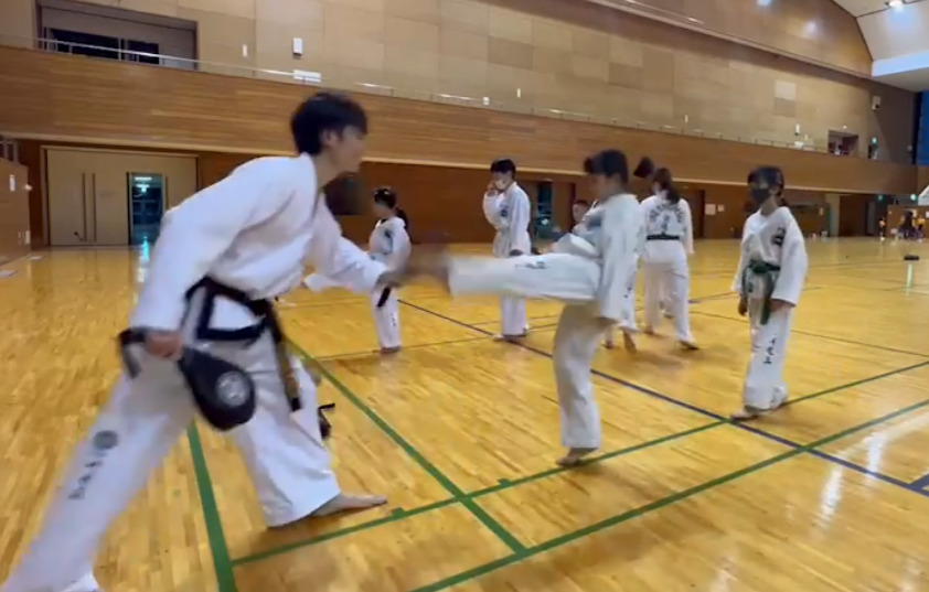 少年部ミット蹴り。少しずつ上手になってきました!!