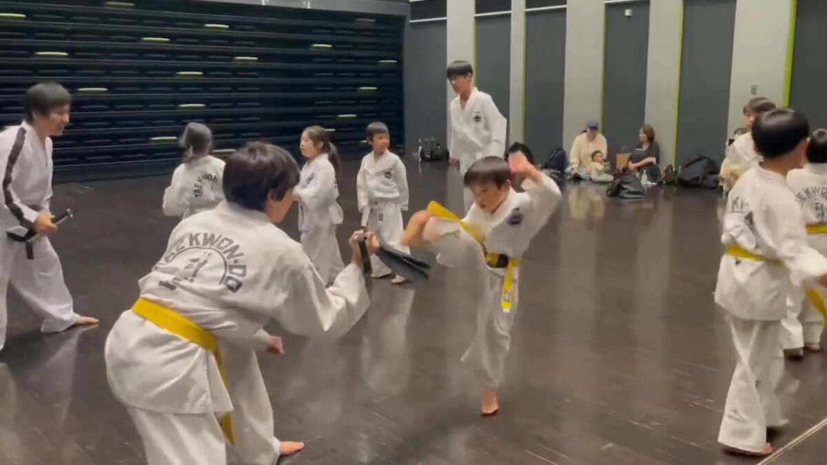 宮原道場 宮原道場 稽古記録(2023年11月) 2023年12月1日 ファラン朴武館 白帯の次の黄帯で習う型を子供たちが一生懸命稽古しています! テコンドーの蹴り技の一つ!ネリョチャギ(かかと落とし)のミット蹴りです!足を高く上げて思い切り振り下ろします!!
