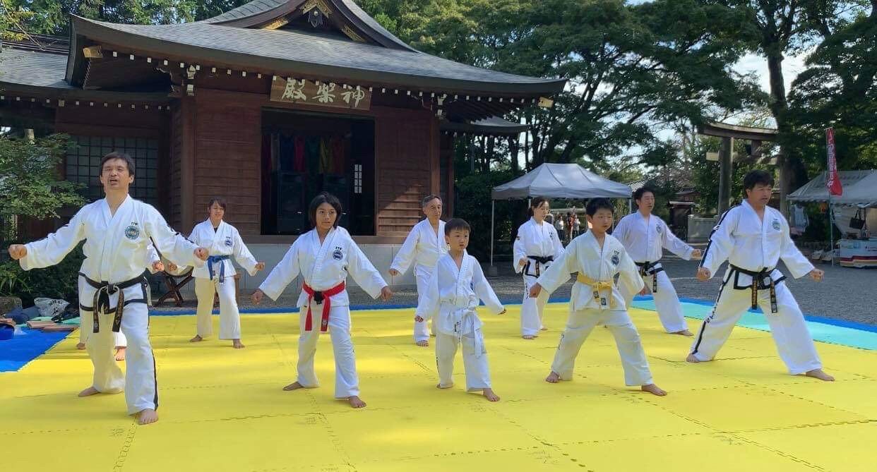演武 高麗神社 秋の武道演武会 テコンドー演武2019 2019年10月4日 ファラン朴武館 2019年9月29日 高麗神社 秋の武術演武会にてテコンドー演武が行われました 演武出演者朴禎祐師範 梅田達哉師範 大島勝副師範 土屋稔副師範 ほか 朴武館 稽古生 日本拳法、テコンドー、合気道の演武が行われ、互いの技術を披露しました 集合写真 演武前の練習 進行は梅田達哉師範 基本動作 トゥル ミット蹴りを披露 大島勝副師範 試割り 土屋実副師範 試割り 梅田達哉師範 トゥルを披露 合気道の演武も行われた 演武後に一息