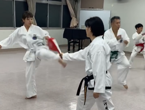 浦和道場 浦和道場 稽古記録(2024年8月) 2024年9月1日 ファラン朴武館 目次少年部成年部少年部 テコンドーの基本蹴りの稽古風景です!子供達も顔よりも高く足が上がるようになってきました! 跳んで回転しながら蹴る難しい技にチャレンジ!今までできなかったことができる成功体験を通して子供たちは成長していきます! 成年部 蹴りのコンビネーションの稽古風景です!色々な蹴りを修得できるのがテコンドーの魅力の一つです! 回転して蹴った後にパンチ!手と足を上手に使えるようになりましょう!!