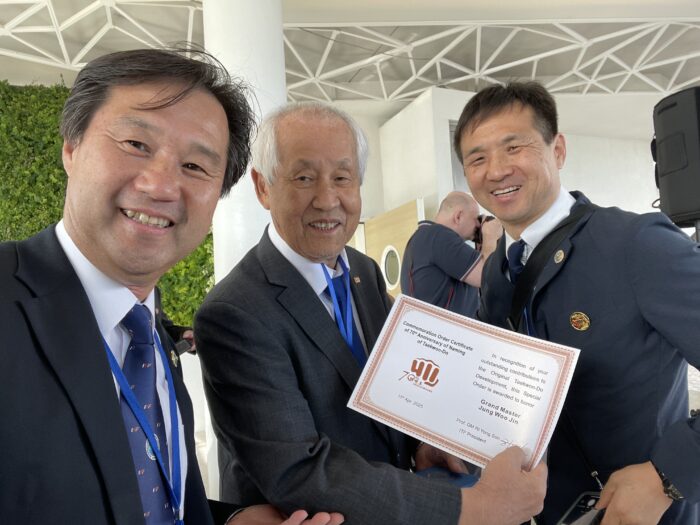 私はこの度、「特別功労賞」を授与される名誉をいただき、跆拳道100周年を迎えるその日まで、正統跆拳道の普及と発展に寄与し、