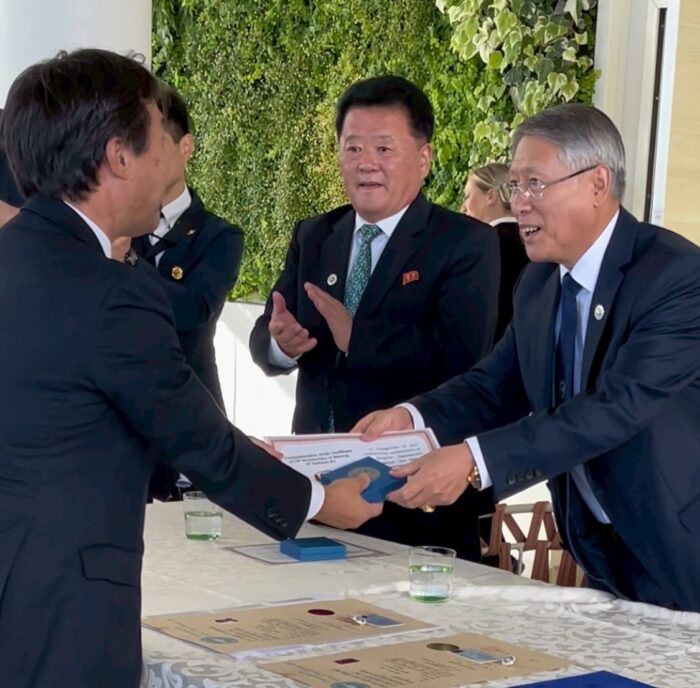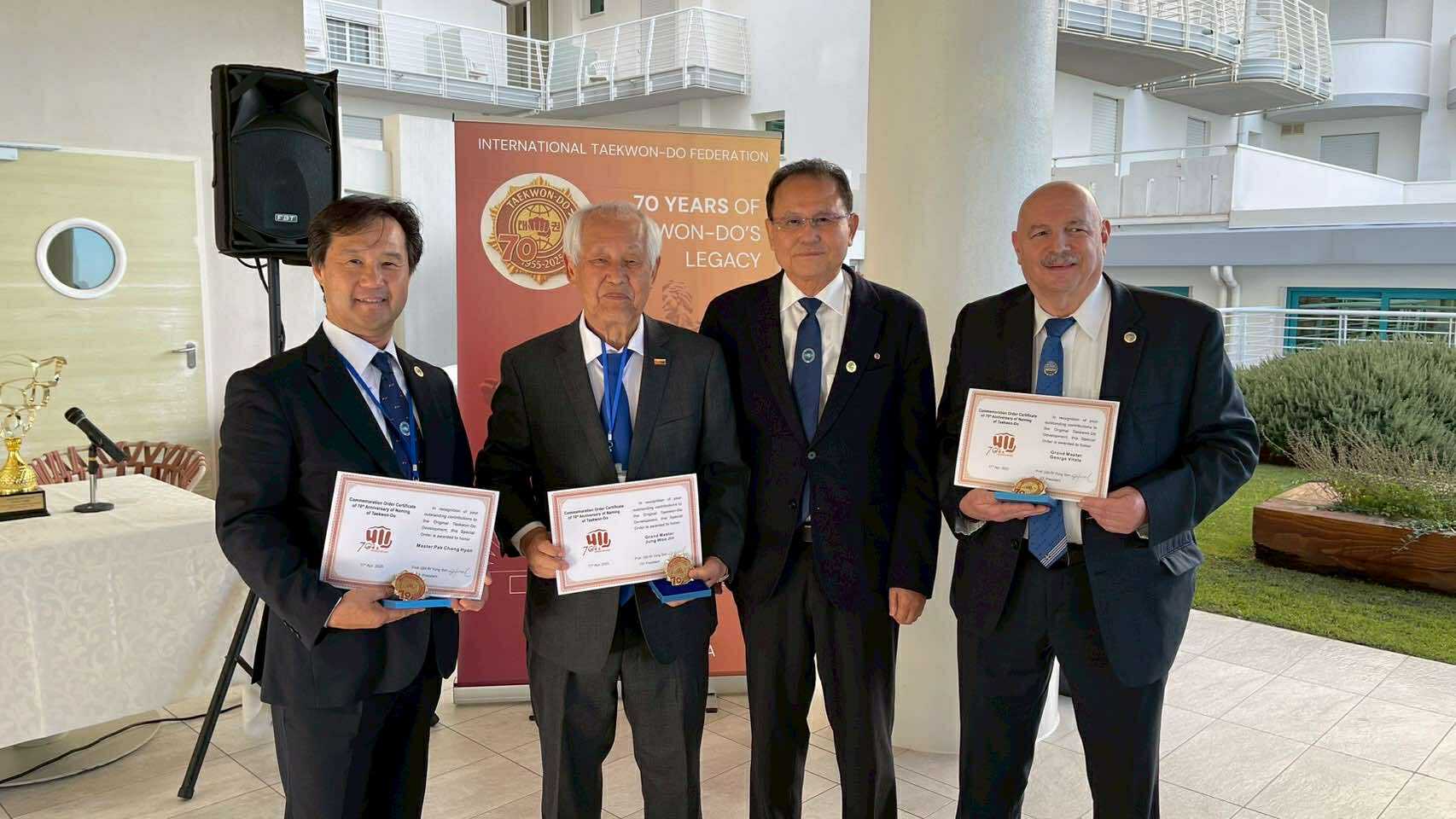 そして、長きに渡り跆拳道の普及発展に貢献した『跆拳道七十周年記念 特別功労賞』が各国マスターたちへ授与されました。