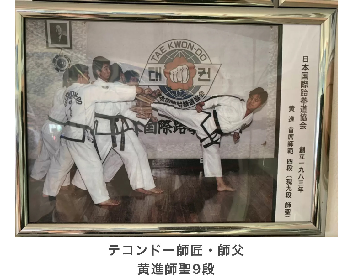 私と師範達が共に稽古する朴武館の道場には、跆拳道を創始された崔 泓熙総裁、日本跆拳道の父 全鎮植首席副総裁、師匠黄進師聖の写真が飾られています。