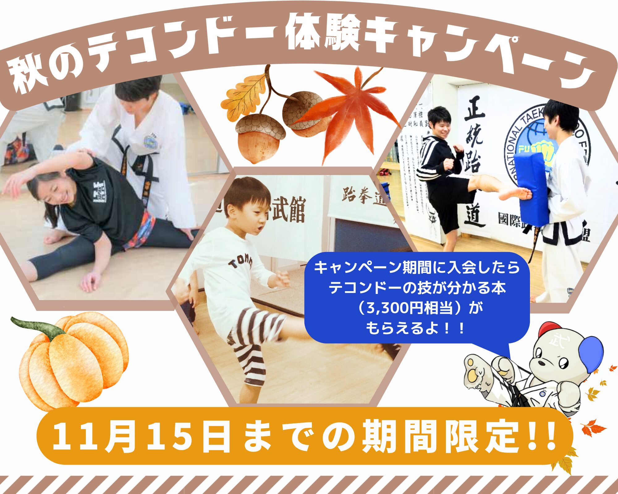 キャンペーン期間中に入会をされた方全員にテコンドーの蹴りや技などが写真付きで掲載されているテコンドーの教本(3,300円相当)をプレゼント!